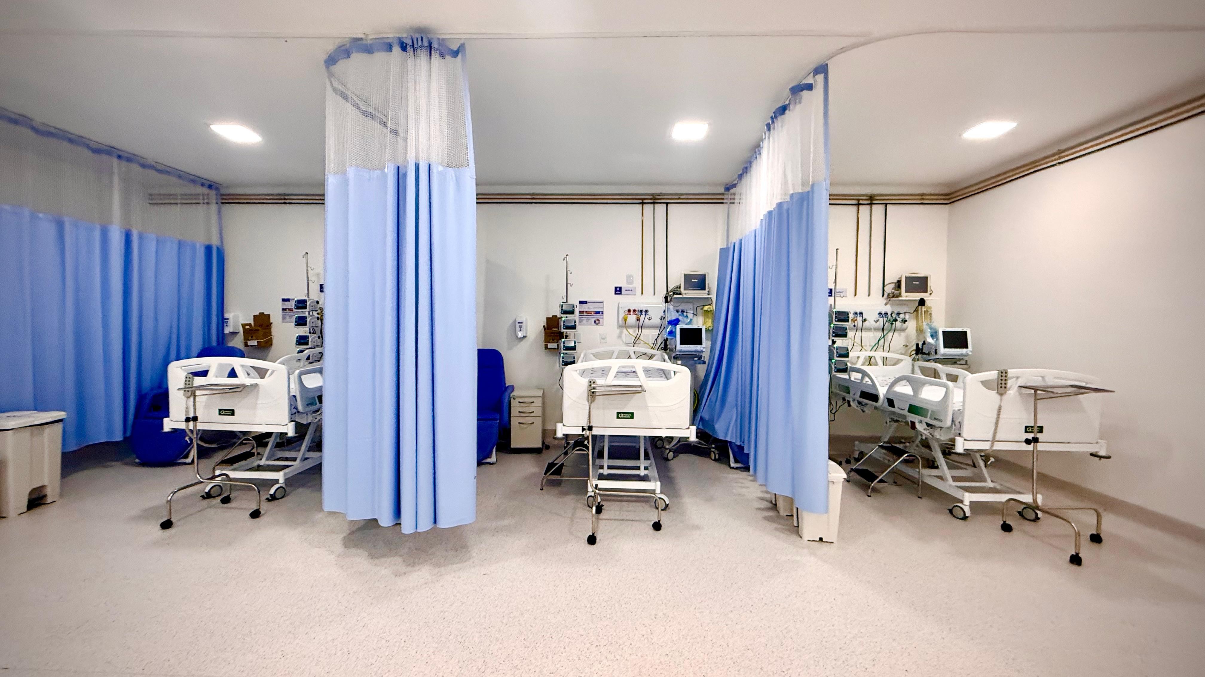 A UTI é equipada com camas hospitalares, respiradores mecânicos, cardioversor, foco auxiliar, eletrocardiógrafo, monitores multiparâmetros, negatoscópio, entre outros equipamentos essenciais.
